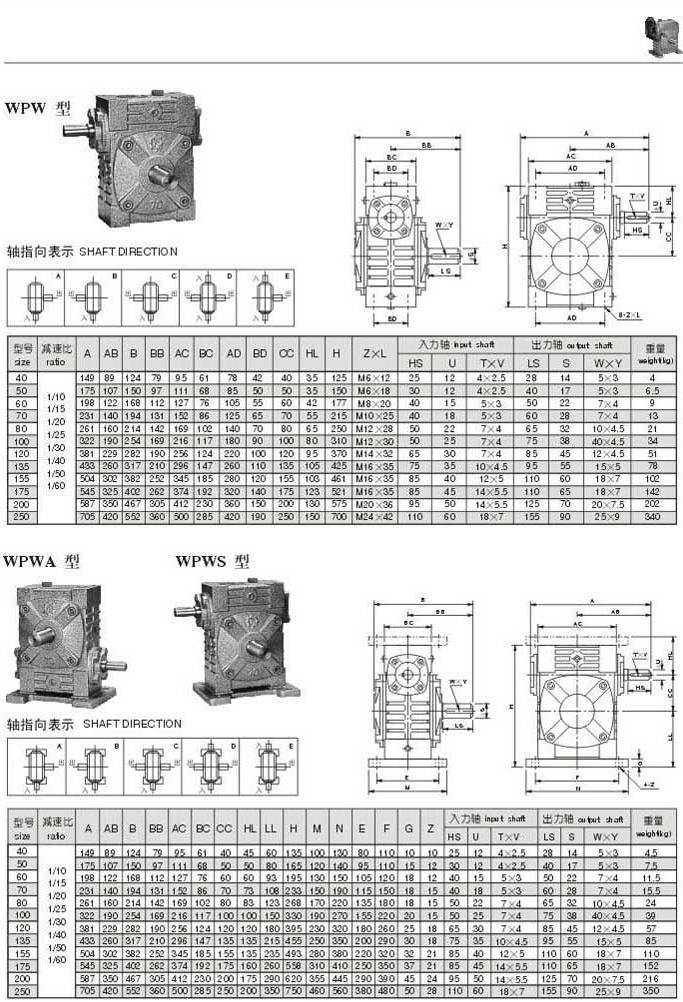 WPW,WPWA,WPWS型型號參數圖表